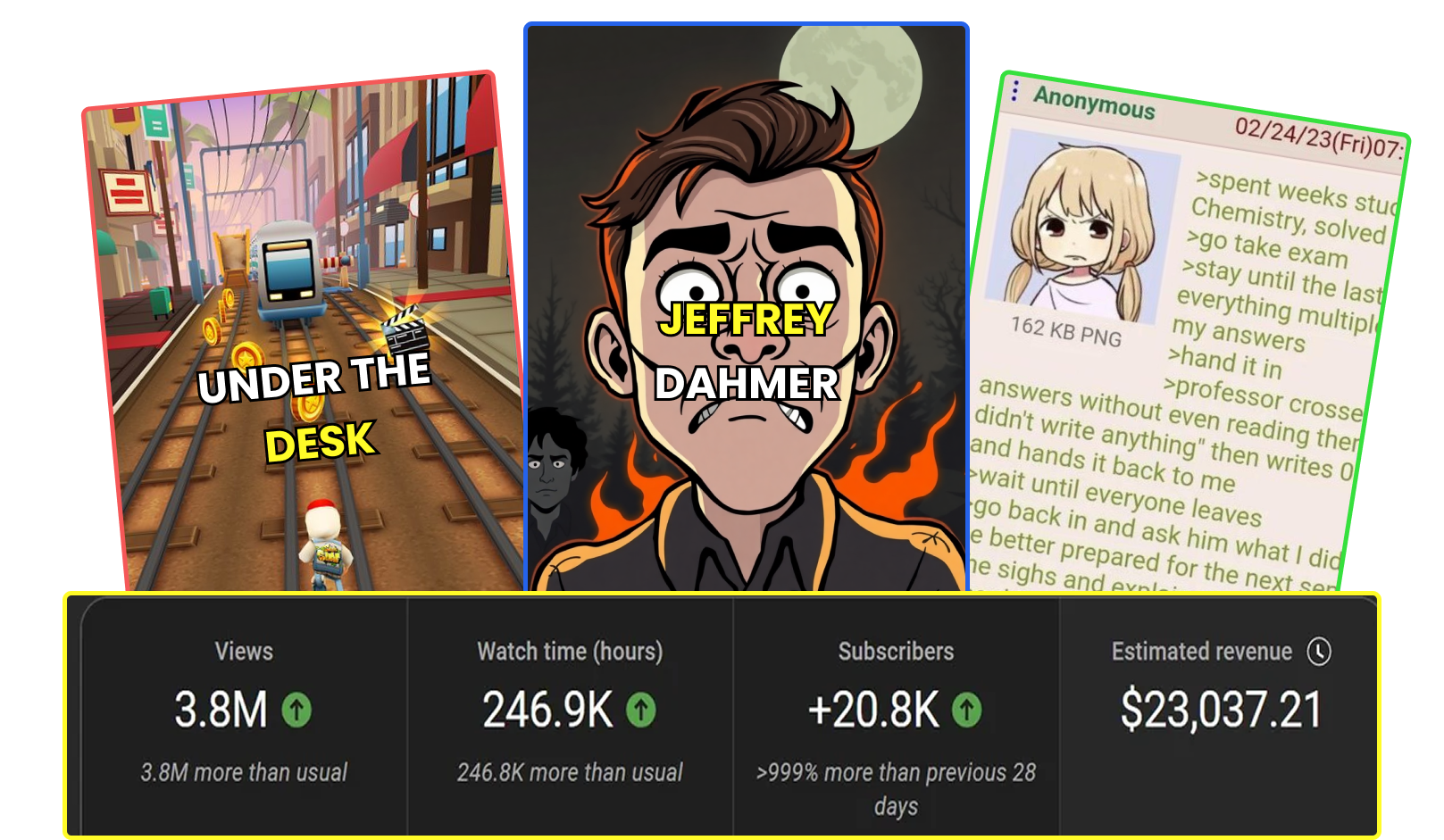 Define a series of videos to post automatically like true crime, reddit stories, or 4chan greentext.
